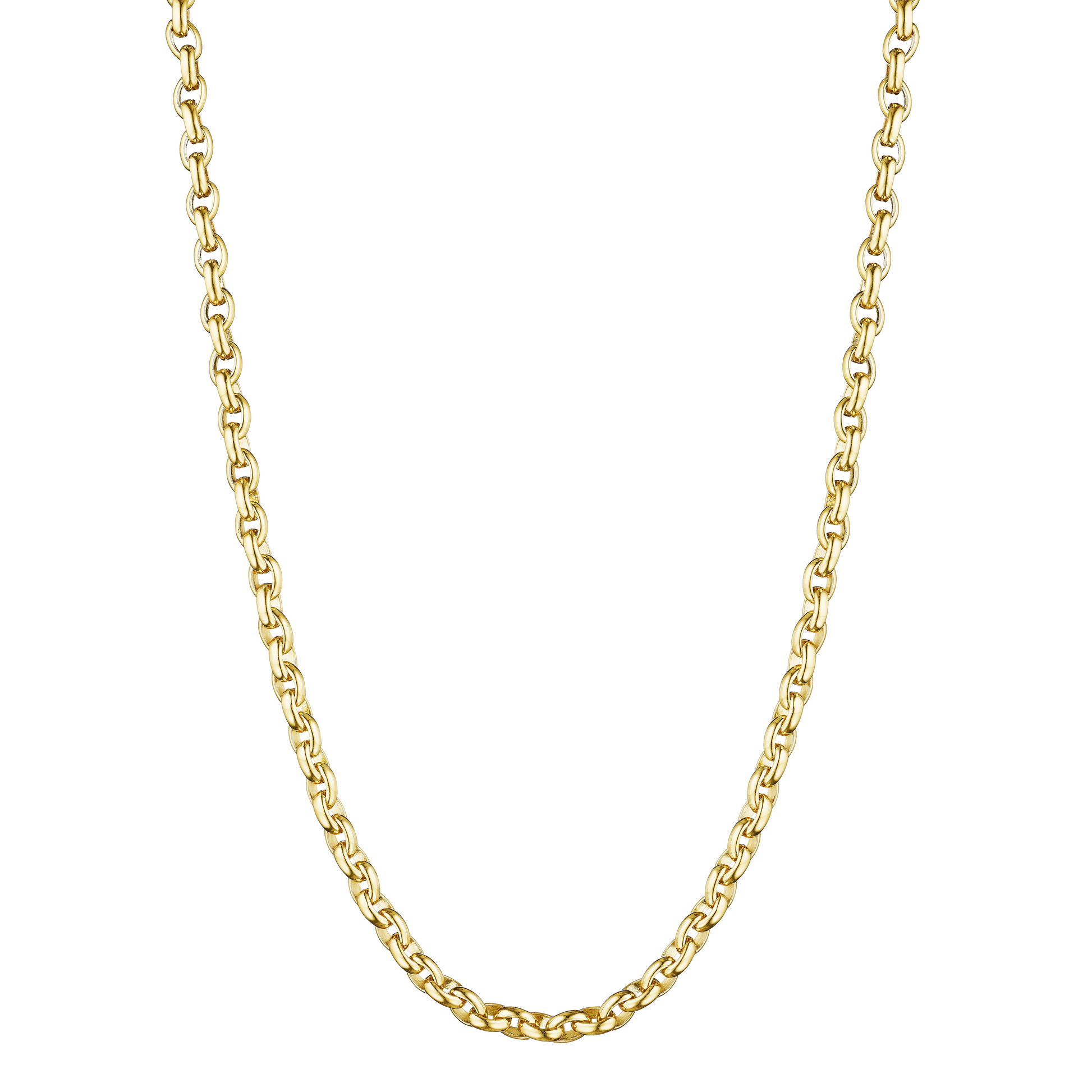 The Lucia Chain is an exquisite 18kt yellow gold rolo link chain featuring interlocking oval-shaped links. Wear it as a solo or layer long with your other pieces.